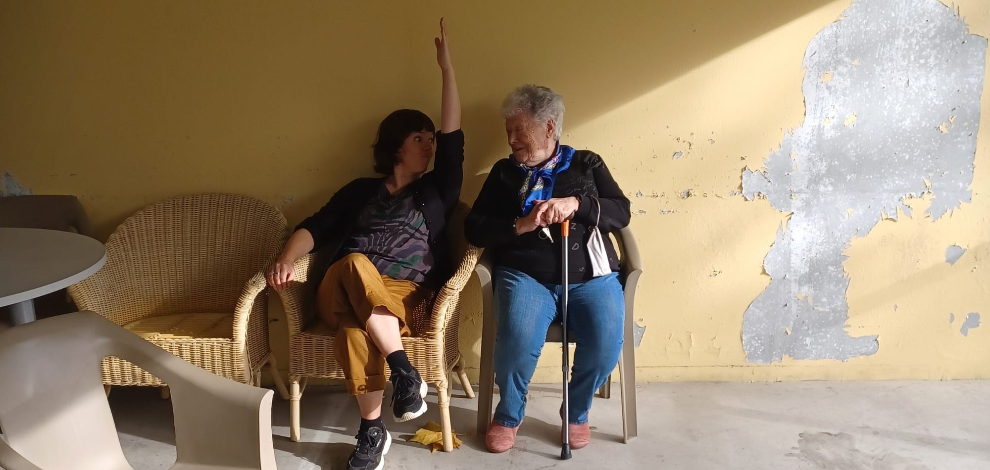 Caroline Denos (chorégraphe ; danseuse) et Anouk Edmont (réalisatrice sonore ; danseuse) proposent de s’atteler à la thématique de la routine à travers des témoignages radiophoniques et dansés. Toutes deux sont artistes et expérimentées dans des interventions auprès d’un large public. Pour activer, archiver et aussi restituer ces témoignages, elles “résident” quelques jours sur place en aménageant le temps, l’espace et les actions in situ.